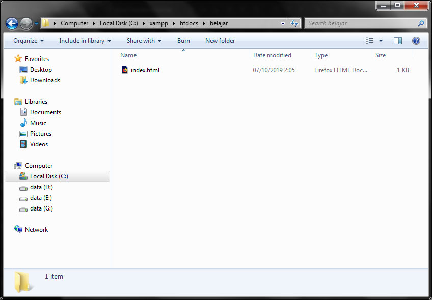 - Buka browser internet anda seperti Mozilla atau Chrome. Ketikkan di alamt urlnya dengan localhost/belajar